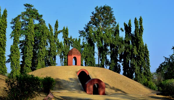 ক’জন জানেন, কেবল আফ্রিকার মিশর নয়, একই ধাঁচের পিরামিড মিলবে এই দেশেই। সেই ১৩ শতকে চিনের তাই রাজ্য মং মাও (বর্তমানে চিনের ইউনান প্রদেশের রুইলি এলাকা) থেকে প্রায় ৯ হাজার অনুগামী নিয়ে ভারত পাড়ি দেন চাওলুং (মহান প্রভু) স্যুকাফা। ১২২৮-’২৯ সালে বর্তমান শিবসাগরে তৈরি হয় আহোমদের রাজপাট। তাঁদের বংশধরেরা এখনও তাই-আহোম নামে পরিচিত। স্যুকাফার রাজনাধী ছিল চড়াইদেও। অসমে এসে এখানকার স্থানীয় উপজাতিদের সঙ্গে সন্ধি করে, বৈবাহিক সম্পর্ক স্থাপন করে রাজ্য বাড়াতে থাকেন তিনি। তাঁর বংশধর রুদ্র সিংহের আমলে রাজধানীর নাম হয় রংপুর। এই আহোম রাজা-রানি-রাজপুত্রদের মৃত্যুর পরে, একেবারে মিশরের মতোই কায়দায় শবদেহ পোরা হত কফিনে। এরপর, ইটের গম্বুজ ধাঁচের মৈদাম গড়ে তাঁর পেটের ভিতরে ধনরত্ন, জাগতিক পছন্দের সামগ্রী, এমনকী, মিশরের মতোই পোষ্য-সহ সেই কফিন রেখে আসা হত. উপরে পড়ত মাটির প্রলেপ. চারিদিক ঘেরা থাকতে ইটের খাটো দেওয়ালে। বর্তমান চড়াইদেওয়ের চত্বরে ছোট-বড় এমন অন্তত ৪০টি মৈদাম এখনও দেখতে পাওয়া যায়। বাকিগুলি কোনওটি চাপা পড়েছে, কোনওটি ভেঙেছে, কোনওটি জঙ্গলে ঢাকা। ৩০টি মৈদামকে ভারতীয় পুরাতত্ত্ব সর্বেক্ষণ এবং রাজ্য প্রত্নতত্ত্ব বিভাগ সংরক্ষণ করছে। বাকি মৈদাম এখনও অরক্ষিত। ইংরাজ আমলেই মৈদামের ভিতরের সম্পদ লুঠ হয়ে গিয়েছে। সংরক্ষিত সবচেয়ে বড় মৈদামের ভিতরে গেলেও দেখা যায় কী ভাবে উপর থেকে ছাদ ফুটো করে মৈদামে ঢোকা হয়েছিল। শিবসাগর থেকে প্রায় ৪০ কিলোমিটার দূরে সাঙ্ঘাতিক এবড়ো খেবড়ো পথ পাড়ি দিয়ে পৌঁছতে হয় মৈদামে। সামনে রাখা আছে পুরনো কামান আর গোলার পসরা এবং ইংরেজ আমলে ব্যবহৃত লোহার নৌকা।