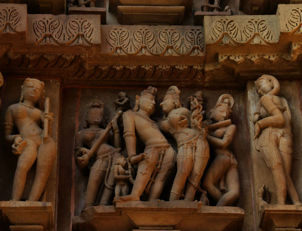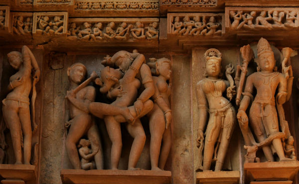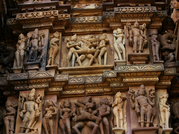 আরও চমক লাগে জগদম্বা-সহ খাজুরাহোর প্রায় প্রতিটি মন্দিরগাত্রে কামশাস্ত্রের বিস্তারিত ভাস্কর্য রূপায়ণ দেখে। গাইডদের বক্তব্য অনুযায়ী, মধ্যযুগ পর্যন্ত হিন্দু শাস্ত্রে মনে করা হত যে কোনও স্থাপত্যের দেওয়ালে বা প্রবেশদ্বারে মৈথুন মূর্তি থাকলে তা অত্যন্ত শুভ ও মঙ্গলদায়ী। কথাটা বিশ্বাস না হওয়ায় আমরা খানিক ইতিহাস ঘেঁটে দেখলাম বিরাট সংহিতায় এমন কথা লিখেছে বটে। তাই মধ্য, পশ্চিম ও দক্ষিণ ভারতের বহু হিন্দু, জৈন বা বৌদ্ধমন্দির গাত্রেই মিথুন মূর্তির কারুকাজ দেখা যায়। তবে তা সাধারণত দেওয়ালের নীচের দিকে। তবে কোনারক আর খাজুরাহোতে তা একদম চোখের সামনে, যাকে বলে আই লেভেলে এবং প্রায় সব মন্দিরের সারা দেওয়াল জুড়ে। যেন এক পূর্ণ জীবনের উৎসব পালন। এবং আরও নির্দিষ্ট করে বললে সেই প্রাচীন ও মধ্যযুগের নারীর সৌন্দর্য ও স্বাধীন যৌনজীবন যাপনের ইতিকথা। কোথাও দেবাঙ্গনা শৃঙ্গার করছে, কোথাও কোনও নগরবধূ স্নানের পর তার দীর্ঘ ঘন চুল শুকোচ্ছে বা কোথাও কোনও রাজবালা অপেক্ষায় বসে আছে যুদ্ধ থেকে কখন তার প্রেমিক ফিরবে সেই আশায়। নারী–পুরুষের বাধাহীন যৌনমিলন ও তার মাধ্যমেই জাগতিক অবস্থা থেকে মোক্ষ লাভ।