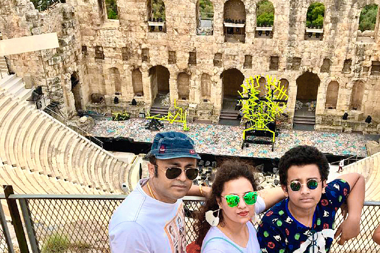 আথেন্সের থিয়েটার অফ ডায়োনিসাসে স্ত্রী ও ছেলের সঙ্গে জয়জিৎ