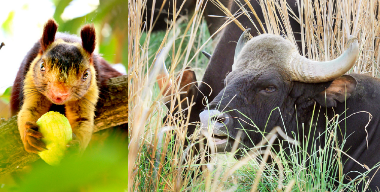 মধ্যপ্রদেশের জঙ্গলে কাঠবিড়াল ও বাইসন