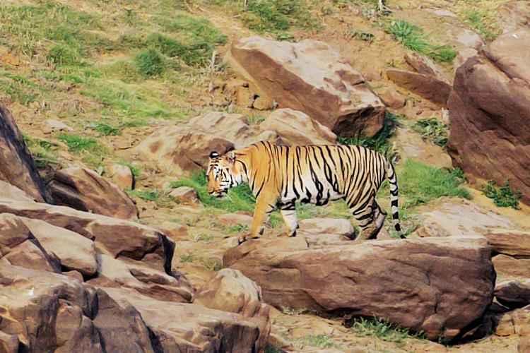 সাতপুরা জঙ্গলের আর একটা রেঞ্জ মাধাই। দেনওয়া নদীর পারে মধ্যপ্রদেশ পর্যটনের অতিথিনিবাসের ঠিক উল্টোদিকে মাধাই বনবিভাগের বিশ্রামাগার। যাকে বলে, প্রাথমিক সুবিধেটুকু একেবারে হাতের নাগালে। বিকেলের দিকে রোদের তাপ একটু কম।একটা বড় ঘাসজমিতে আপন মনে চরে বেড়াচ্ছে একদল গাউর অর্থাৎ ইন্ডিয়ান বাইসন। সামনেনদী... এই নদীর উলটোদিকে গতকাল একটা বড়সড় বাইসনকে তিনটে কমবয়সি বাঘ একজোট হয়ে শিকার করেছে, সঙ্গে তাদের মা-ও ছিল। রোদ কমলে যদি তারা বেরোয়, এই আশায় রোদ মাথায় নিয়ে সকলের বসে থাকা বহুক্ষণ। সেই বাইসনটার আধখাওয়া লাশ দেখা যাচ্ছে অনেক দূরে, কিন্তু ‘তাদের’ দেখা নেই। হঠাৎই আমাদের গাইডের চোখ নদীরও পারে একটা পাথুরে জমির উপরে। দেখি, হলুদ ডোরা কাটা একটা শরীর! ঠিক একটু আগেই যেন ঘুম ভেঙেছে, সেই ভঙ্গিতে পাথর টপকে ধীরে ধীরে একেবারে লাশটার কাছে। একটু পরে আরও একটা। সামনে মস্ত বাইসনটা পড়ে থাকতে দেখে, আনন্দে ওরা মাটিতে গড়াগড়ি খেল বেশ কিছুক্ষণ। বাকি একটা আর মায়ের আজ আর খবর নেই। অথচ আজকের মতো আমাদের সময় শেষ। অন্ধকার নামার আগেই তাই ফিরে এলাম সবাই।