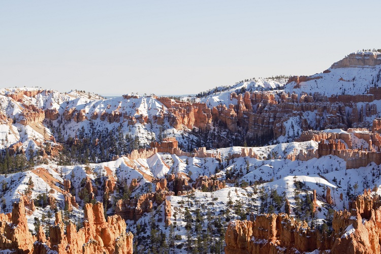 এর মধ্যে ব্রাইস ক্যানিয়ন ভীষণই সুন্দর। সময়ের তোয়াক্কা না করে তাই যাওয়ার ফাঁকে এক চক্কর কেটে নিলাম ব্রাইসে।ব্রাইসে ঢোকার মুখে দুটো রেড ক্যানিয়ন আর্চ রয়েছে। রাজস্থানের কেল্লায় ঢোকার মুখে যেমন বিশাল ফটক থাকে, ঠিক তেমনই। নভেম্বরে রাস্তার দু’পাশে পেঁজা তুলোর মতো বরফের পাহাড় জমেছে। হাতছানি এড়ানো গেল না!