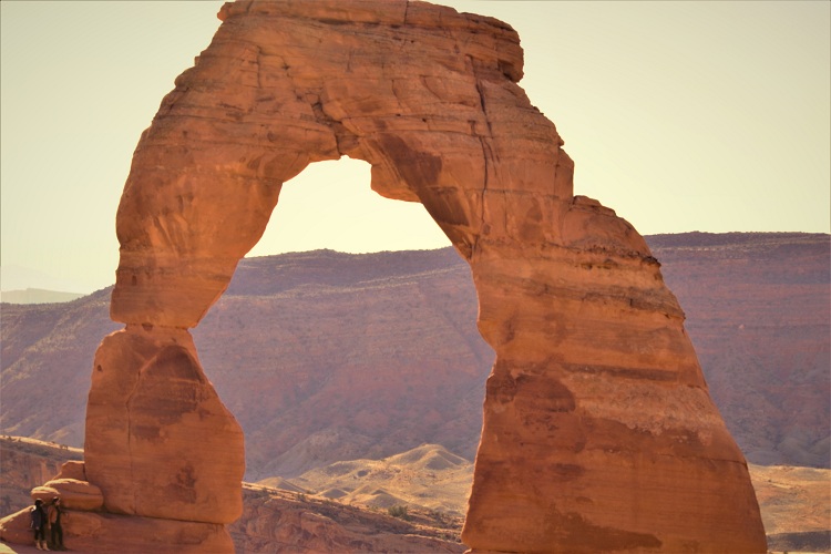 পিছনের দৃশ্যপটে রয়েছে বরফের চাদরে মোড়া লা সল্ মাউন্টেন। এখান থেকে প্রায় ৩৫ মাইল দূরে। সূর্যোদয়ের ঠিক আগের মুহূর্তে এবং সূর্যাস্তের সময়ে এই বিস্তৃত ভূমি লাল রঙে রেঙে উঠলে ডেলিকেট আর্চকে যে কী অপূর্ব লাগে! সেইদৃশ্য ক্যামেরাবন্দি করার চেষ্টা করলাম।