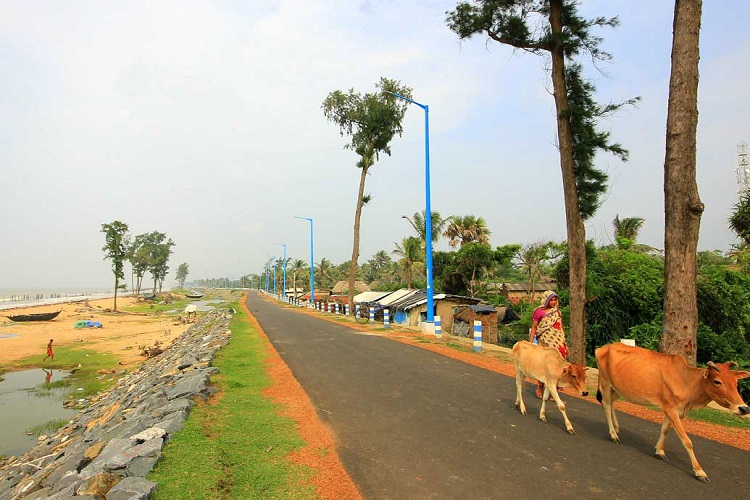 এ বার তাজপুর-শঙ্করপুরগামী রাস্তায় চলে এলাম। এক অসাধারণ রাস্তা। এক দিকে সমুদ্রের উচ্ছ্বাস মাঝে বুক চিরেছে মিশকালো পিচ রাস্তা। ডান দিকে ছবি আঁকা গ্রাম। এক দিকে ঝোড়ো হাওয়া, উত্তাল সমুদ্রের উচ্ছ্বাস আর অন্য দিকে গ্রামজীবনের চলমান ছবি। তাজপুরের গা ঘেঁষা গ্রামের নাম, চাঁদপুর। সমুদ্রের আগ্রাসন ঠেকাতে সাগরপার বাঁধিয়ে সুসজ্জিত করার কাজ চলছে। বাঁধানো বিস্তৃত চাতাল। বহু দূর চলে গিয়েছে। এখানেই গড়ে উঠেছে মেরিন ড্রাইভ। নিরালায় বসে সমুদ্রকে উপভোগ করতে হলে তাজপুর থেকে ঢিল ছোড়া দূরত্বের নবনির্মিত এই মেরিন ড্রাইভে চলে আসুন। আদিগন্ত আকাশের নীচে বঙ্গোপসাগরের বিস্তার। পাগলপারা ঝোড়ো হাওয়া। মাঝে মাঝে ঢেউ এসে ভিজিয়ে দিয়ে যাবে। পাশেই গ্রামজীবনের চলমান ছবি, এক কথায় অনবদ্য। এই স্থান স্নানের পক্ষে এক্কেবারেই উপযুক্ত নয়।