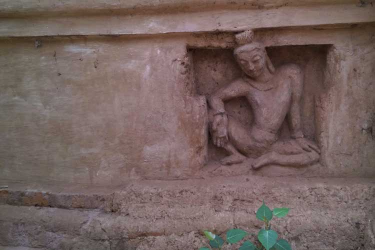 মহাবিহারের একটি অংশে বিশেষভাবে গ্রিন হাউসের মতো ঢাকা দেওয়া রয়েছে দেখলাম।সেখানে একটু নীচে নামতে হল।নেমে শুধু অবাক হয়ে তাকিয়ে থাকা।বিহারের নীচের কারুকাজ করা অংশে বিভিন্ন মুদ্রায় পরপর একাধিক বৌদ্ধমূর্তি।অসাধারণ তার নির্মাণ কৌশল।সবই নামমাত্র সংরক্ষিত।কিউরেটরের কথায়, হীন যান ও মহাযান সম্প্রদায়ের প্রভাব পড়েছিল এই বিহারে।মহিলাদেরও প্রবেশ ছিল এই বিহারে যার প্রমাণ হিসেবে দেখতে পাওয়া গেল দেওয়াল গাত্রের কিছু মূর্তি।