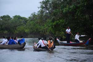 রঙিন জামা, মাথায় মানানসই টুপি, কোলে বছর দুয়েকের শিশুকন্যাকে নিয়ে বৈঠে হাতে বসে আছেন তরুণী। নেমে যেতে হল তাঁর ডিঙিতে। ভ্রমণ শেষে মাথা পিছু ৮ মার্কিন ডলার করে তুলে দিতে হবে তাঁর হাতেও। পাশের নৌকোয় বসা ভারতীয় বান্ধবীর অবাক উক্তি, “ভাবা যায়, এঁরাও ডলারে কামায়!”