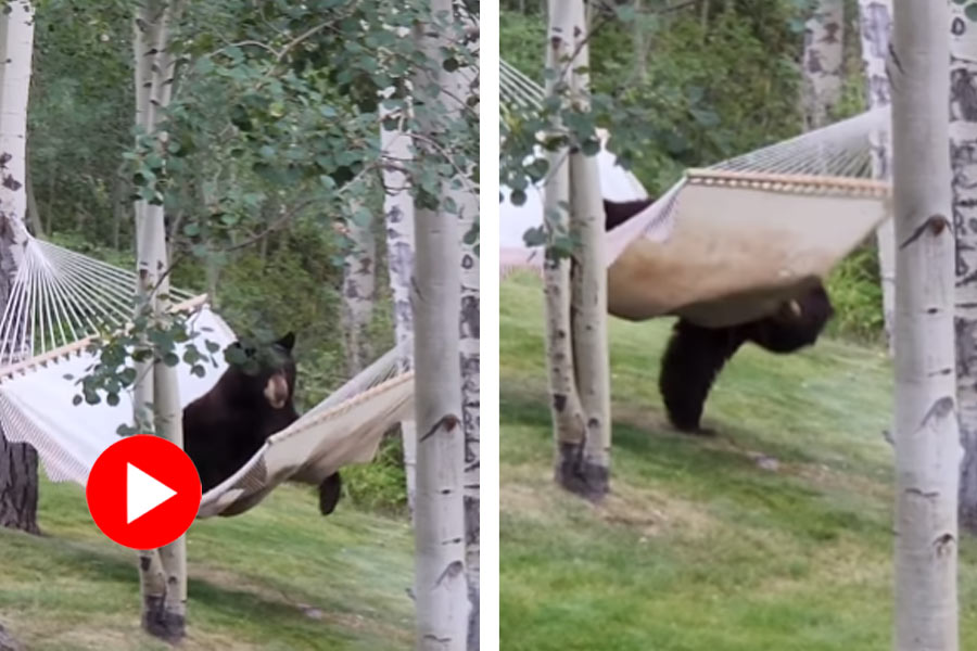 হাওয়া খেতে খেতে হ্যামকের উপর শুয়ে একটুখানি জিরিয়ে নেবে। এই ছিল ভালুকের ইচ্ছা। কিন্তু এই সামান্য ইচ্ছাপূরণ করতেই তাকে নাস্তানাবুদ হতে হল। হ্যামকে যত বার উঠতে যাচ্ছে, তত বার পড়ে যাচ্ছে সে। শেষে রাগ মাথায় চড়ে বসল ভালুকটির। বালিশ নিয়ে তা ছিঁড়ে ফেলার চেষ্টা করল সে। তার পর তা নিয়ে গাছের ডাল ধরে উপরে উঠতে যাচ্ছিল ভালুকটি। সেই চেষ্টাও ব্যর্থ হল তার। মুখ থেকে বালিশটি গেল নীচে পড়ে। সমাজমাধ্যমে এমনই একটি ভিডিয়ো ছড়িয়ে পড়েছে (যদিও এই ভিডিয়োর সত্যতা যাচাই করেনি আনন্দবাজার ডট কম)।