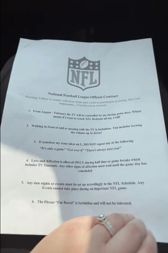 ৪ সেপ্টেম্বর থেকে শুরু হচ্ছে ন্যাশনাল ফুটবল লিগ। এই লিগের প্রতিটি ম্যাচ নিয়েই আগ্রহী তরুণ। ম্যাচ চলাকালীন কোনও ভাবেই বিরক্ত বোধ করতে চান না তিনি। চিঠি লিখে তরুণ তাঁর প্রেমিকাকে জানান, যত ক্ষণ ম্যাচ চলবে তত ক্ষণ টেলিভিশনের রিমোটে যেন তাঁর প্রেমিকা হাত না দেন। এমনকি, টিভির শব্দ বাড়ানো অথবা কমানোর সিদ্ধান্তও নিতে পারবেন না তরুণী।