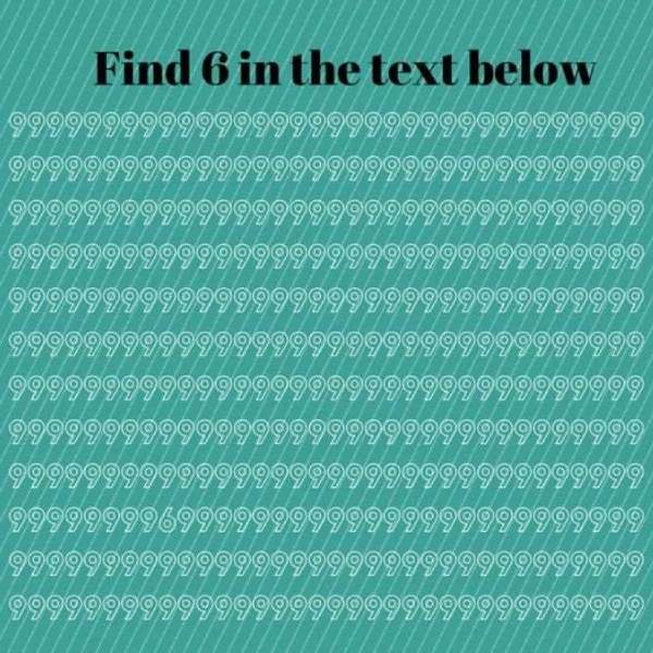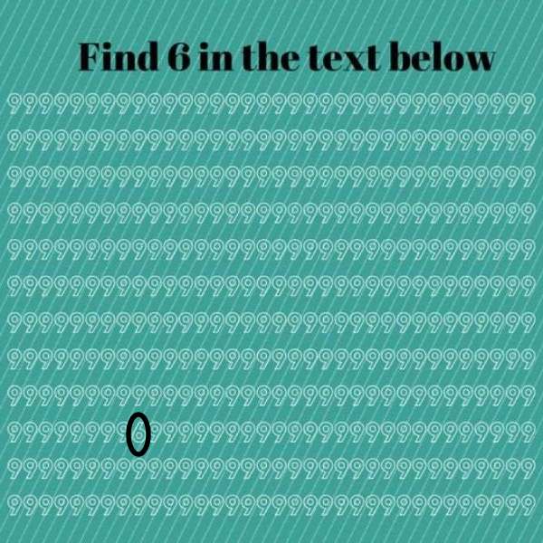 নয় আর ছয়কে আলাদা করতে হবে। কাজটা মোটেই সহজ নয়। কারণ দু’টি সংখ্যারই আকার এক। তফাৎ শুধু সোজা-উল্টোর। নয়কে উল্টে দিলেই হয় ছয় বা ছয়কে উল্টোলে নয়। আর যে ছবি থেকে খুঁজে বার করার কাজ, সেই ছবিতে রাশি রাশি নয়ের সারি। তার মধ্যে লুকিয়ে রাখা হয়েছে একটি মাত্র ছয়কে। দৃষ্টি প্রখর খুঁজে বার করতে আপনার পাঁচ সেকেন্ড বা তারও কম সময় লাগার কথা। নজর দুর্বল হলে সময় লাগবে বেশি।