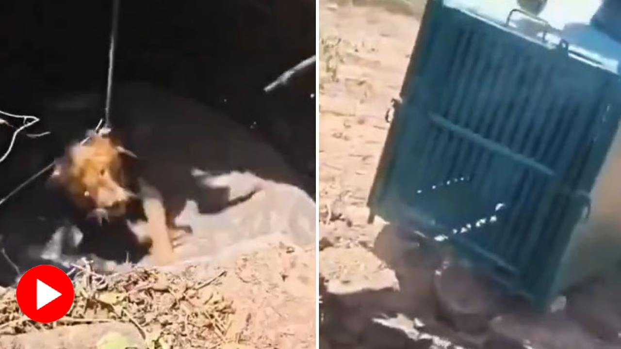 শিকারের খোঁজে জঙ্গলের নিকটবর্তী জনপদে ঢুকে পড়েছিল একটি বিশাল সিংহ। বুঝতে না পেরে জনপদে ঢুকতেই একটি গভীর কুয়োর ভিতর পড়ে যায় সে। সিংহটিকে কুয়োয় পড়ে যেতে দেখে সঙ্গে সঙ্গে বনবিভাগে খবর পাঠানো হয়। এক ঘণ্টার চেষ্টায় সিংহটিকে উদ্ধার করতে সফল হন বনবিভাগের কর্মীরা। সম্প্রতি সমাজমাধ্যমের পাতায় এমনই একটি ভিডিয়ো ছড়িয়ে পড়েছে (যদিও সেই ভিডিয়োর সত্যতা যাচাই করেনি আনন্দবাজার ডট কম)।