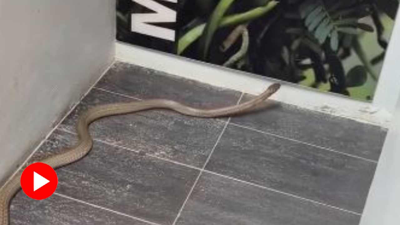 জনসাধারণের ব্যবহারের জন্য মহিলা এবং পুরুষদের শৌচালয় ছিল পাশাপাশি। হঠাৎ মহিলাদের শৌচালয়ে ঢুকে পড়ল একটি বিশাল শঙ্খচূড়। মেঝের উপর এঁকেবেঁকে চলে সে ঢুকে পড়ল পুরুষদের শৌচালয়ে। সম্প্রতি সমাজমাধ্যমের পাতায় এমনই একটি ভিডিয়ো ছড়িয়ে পড়েছে (যদিও সেই ভিডিয়োর সত্যতা যাচাই করেনি আনন্দবাজার ডট কম)।