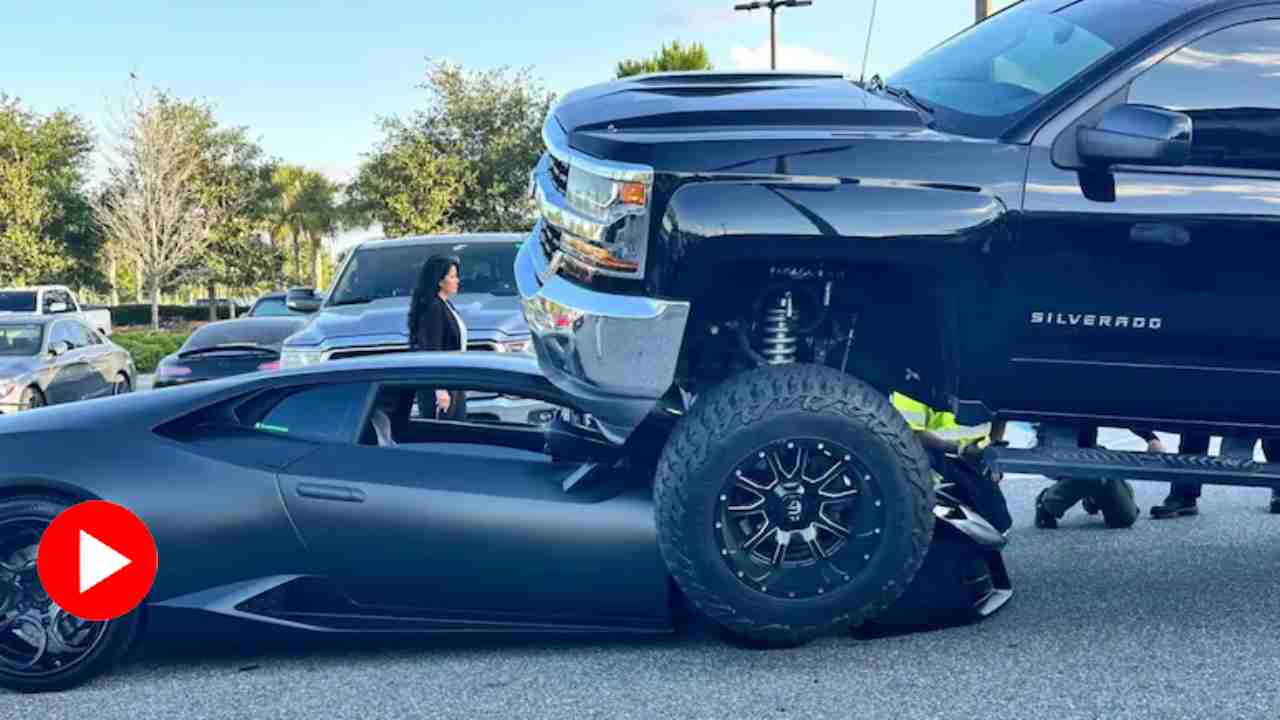 ‘ব্রেকিং৯১১’ নামের অ্যাকাউন্ট থেকে এক্স (সাবেক টুইটার) হ্যান্ডলের পাতায় একটি ভিডিয়ো পোস্ট করা হয়েছে। সেই ভিডিয়োয় দেখা গিয়েছে যে, একটি দামি ল্যাম্বর্ঘিনির দিকে জোরে ছুটে এল একটি বড় পিক-আপ ট্রাক। গতি নিয়ন্ত্রণে না রাখতে পেরে ল্যাম্বর্ঘিনির ছাদের উপর উঠে গেল বড় গাড়িটি। এই ঘটনাটি সম্প্রতি ফ্লরিডার লেক নোনা জিমের সামনের পার্কিং লটে ঘটেছে। ল্যাম্বর্ঘিনির চালকের নাম রামন ফেরার। পাঁচ মাস আগেই আড়াই লক্ষ ডলার (ভারতীয় মুদ্রায় যার পরিমাণ ২ কোটি ৩৬ লক্ষ ৪৭ হাজার ৯০০ টাকা) দিয়ে গাড়িটি কিনেছিলেন।