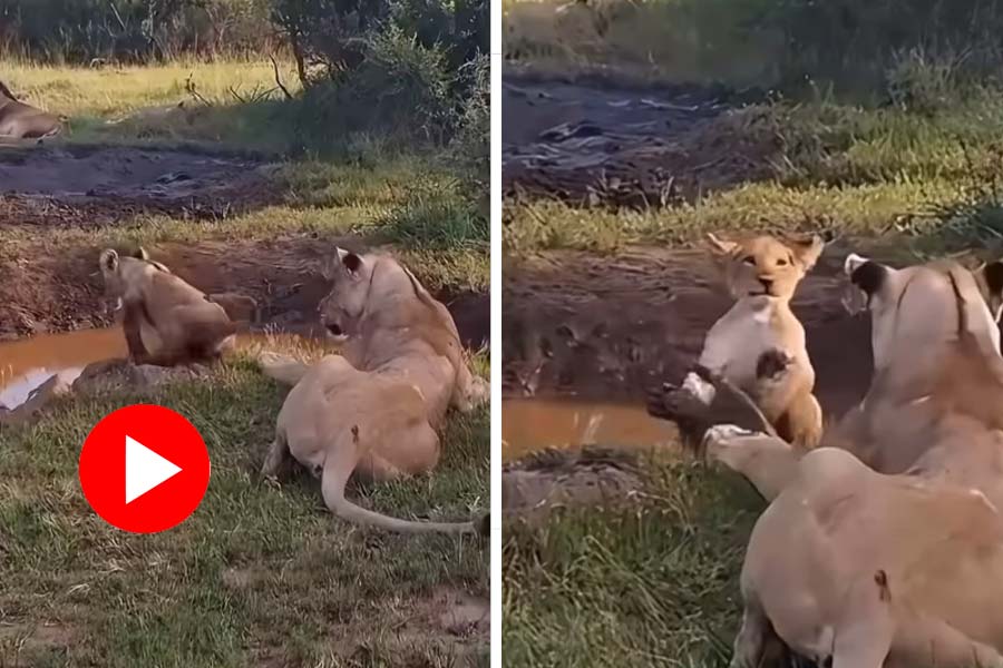 ঘটনাটি কোথায় ঘটেছে তা অবশ্য জানা যায়নি। তবে ভিডিয়োটি দেখে অবাক হয়ে গিয়েছেন নেটাগরিকদের একাংশ। এক জন আবার মজা করে লিখেছেন, ‘‘এ যে ভিন্ন ধর্মের প্রেম। সিংহের সঙ্গিনীকে এ ভাবে আদর করতে দেখলে কিন্তু ‘বনের রাজা’ খেপে যাবে।’’
