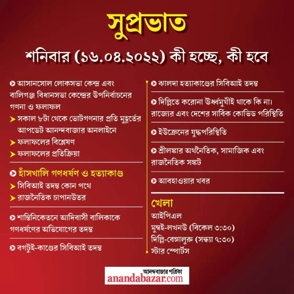 আজ, শনিবার আসানসোল লোকসভা কেন্দ্র এবং বালিগঞ্জ বিধানসভা কেন্দ্রের উপনির্বাচনের গণনা রয়েছে। সকাল ৮টা থেকে ওই দুই কেন্দ্রে গণনা শুরু হবে। কোন দল এগিয়ে, কে জিতল সব আপডেট দেখা যাবে আনন্দবাজার অনলাইনে। এ ছাড়া আজ আলোচনায় থাকবে ভোটের ফলের বিশ্লেষণ।