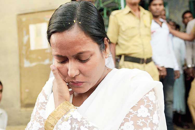 রায় ঘোষণার পরে সিউড়ি আদালতে স্ত্রী পুতুল। সোমবার। নিজস্ব চিত্র