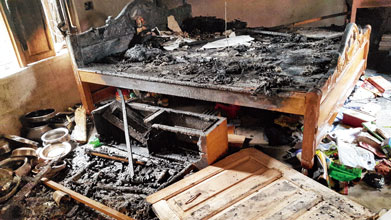 আগুনে পুড়ে ছাই রমেশ ঘোষালের বাড়ির আসবাবপত্র।