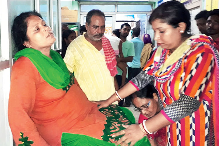 চিকিৎসাধীন মহিলা। ছবি: প্রসেনজিৎ সাহা