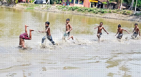বৃষ্টি নেই। রোদের তাপে, গরমে মানুষ নাজেহাল হয়ে যাচ্ছে। সে সময় হঠাৎ গ্রামে জল দেখে অবাক গ্রামবাসী। হাটে বাজারে জল ঢুকে পড়ায় বড় রকমের ক্ষতিও হল ব্যবসায়ীদের।