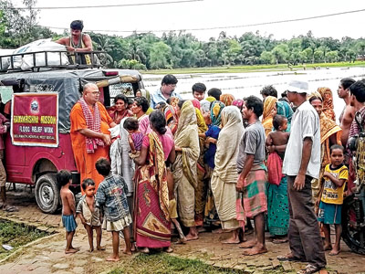 স্বামী দুর্গাত্মানন্দ। সাগর ব্লকের মুড়িগঙ্গা ও সুমতিনগর এলাকাতেও কয়েক হাজার মানুষের