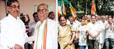 করেছেন এ দিন। তৃণমূল প্রার্থী দীপেন্দু বিশ্বাস আগেই মনোনয়ন জমা দিয়েছেন। ছবি: নির্মল বসু।