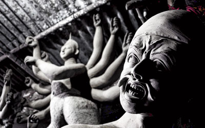 রং ধরেনি এখনও। তবে জোরদার কাজ চলছে প্রতিমা গড়ার।