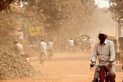 হাল খারাপ। ফলে ধুলোয় প্রাণ ওষ্ঠাগত পথচারীদের। নিজস্ব চিত্র।