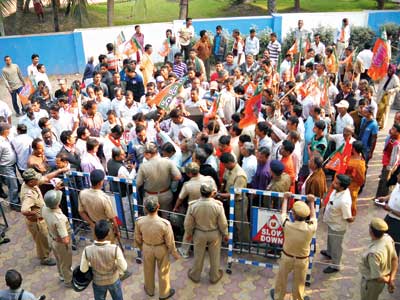 বিকেলে ডায়মন্ড হারবার মহকুমা অফিসের সামনে আইন অমান্য আন্দোলন করল বিজেপি।