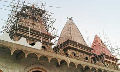 সাগর মেলার আর বেশি দিন বাকি নেই। চলছে কপিল মুনির মন্দির সংস্কারের কাজ। ছবি: শিবনাথ মাইতি।