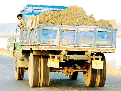 শাসনের পথে বেআইনি মাটি বোঝাই ট্রাক।