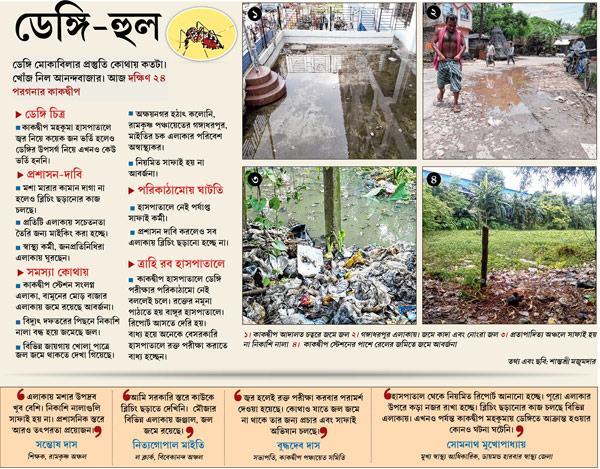 ডেঙ্গি মোকাবিলার প্রস্তুতি কোথায় কতটা। খোঁজ নিল আনন্দবাজার। আজ দক্ষিণ ২৪ পরগনার কাকদ্বীপ
