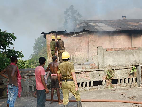 নেভানো হচ্ছে আগুন।—নিজস্ব চিত্র।