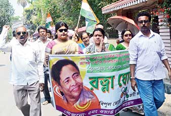 ৫ নম্বর ওয়ার্ডের তৃণমূল প্রার্থী রত্না ঘোষ চলেছেন মনোনয়ন জমা দিতে। সোমবার তোলা নিজস্ব চিত্র।