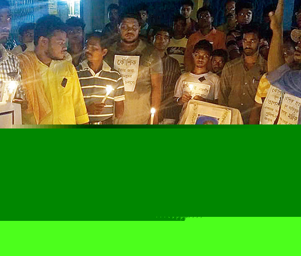 কৌশিক খুনের প্রতিবাদে মিছিল মন্দিরবাজারে। —নিজস্ব চিত্র।