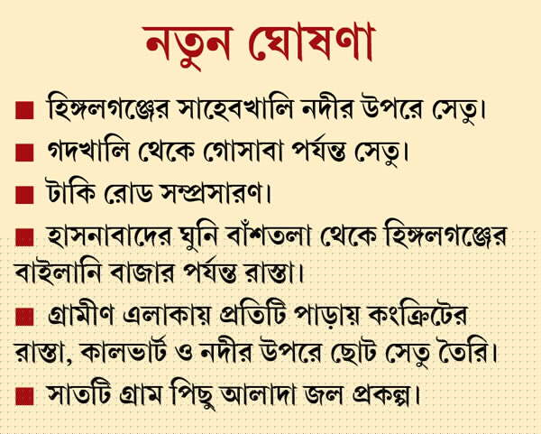 নতুন সেতু, কংক্রিটের রাস্তা, জল প্রকল্প, রেশনের বিশেষ প্যাকেজ।