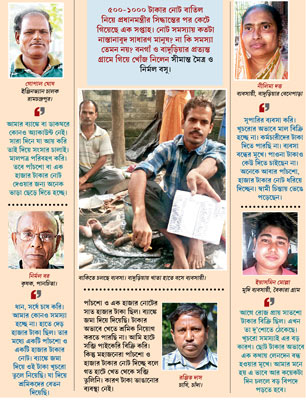 ৫০০-১০০০ টাকার নোট বাতিল নিয়ে প্রধানমন্ত্রীর সিদ্ধান্তের পর কেটে গিয়েছে এক সপ্তাহ। নোট সমস্যায় কতটা নাস্তানাবুদ সাধারণ মানুষ? না কি সমস্যা তেমন নয়? বনগাঁ ও বাদুড়িয়ার প্রত্যন্ত গ্রামে গিয়ে খোঁজ নিলেন সীমান্ত মৈত্র ও নির্মল বসু।৫০০-১০০০ টাকার নোট বাতিল নিয়ে প্রধানমন্ত্রীর সিদ্ধান্তের পর কেটে গিয়েছে এক সপ্তাহ। নোট সমস্যায় কতটা নাস্তানাবুদ সাধারণ মানুষ? না কি সমস্যা তেমন নয়? বনগাঁ ও বাদুড়িয়ার প্রত্যন্ত গ্রামে গিয়ে খোঁজ নিলেন সীমান্ত মৈত্র ও নির্মল বসু।