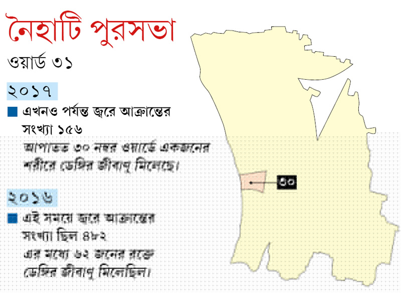 ডেঙ্গি গত বছর ঘুম কেড়ে নিয়েছিল নৈহাটি পুর-কর্তৃপক্ষের। দশটি ওয়ার্ডে রোগের প্রকোপ ছড়িয়েছিল। হাসপাতালে ভর্তি হয় অনেককে।