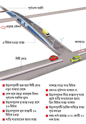 উড়ালপুলটির দায়িত্বে রাজ্য পূর্ত দফতর। পিডব্লিউডি প্রথম দফার সমীক্ষা শেষ করেছে গত নভেম্বরে। দফতরের এক আধিকারিক জানান, উড়ালপুলের দু’প্রান্ত রহড়া এবং বিটি রোডের দিকে চওড়া হবে ১৬ মিটার। উড়ালপুলের মূল রাস্তাটি ১২ মিটার চওড়া। গাড়ি যাতায়াতের জন্যে রাস্তা থাকছে সাড়ে সাত মিটার। কোনও ফুটপাথ থাকবে না। উড়ালপুলের নীচে রাস্তার দু’ধারে ছোট গাড়ি যাতায়াতের জন্যে