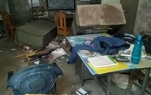 হামলাকারীদের আর একটা অংশ চড়াও হয় প্রধান শিক্ষকের ঘরে। শুক্রবার সকালে ঘটনাস্থল উত্তর ২৪ পরগনার গোপালনগরের নূতনগ্রাম সুভাষিণী হাইস্কুল।