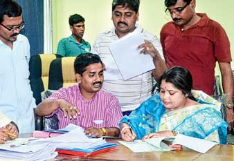 মহকুমাশাসকের দফতরের সামনে সাংবাদিক বৈঠক করে প্রার্থীদের নিয়ে নাম ঘোষণা করেন বিশ্বজিত্বাবু। ছিলেন প্রাক্তন বিধায়ক গোপাল শেঠও। প্রার্থীদের দলীয় প্রতীক ছিল গোপালবাবুর কাছে। তিনি প্রার্থীদের মধ্যে তা বণ্টন করেন। চেয়ারম্যান ও তাঁর স্বামী শঙ্করবাবু বিধায়ককে প্রণাম করে মনোনয়নপত্র জমা দিতে যান। গোপালবাবু বলেন, “কর্মীদের মধ্যে যে সাড়া আজ মিলেছে তাতে জয় শুধু সময়ের অপেক্ষা।”
