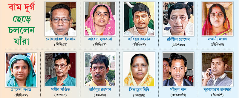 যে পুরসভায় তৃণমূল একটিও আসন পায়নি, সেই জঙ্গিপুর পুরসভার সিপিএমের প্রধান মোজাহারুল ইসলামের হাত ধরে পুরসভার এগারো কাউন্সিলর তিনটি টাটা সুমোয় বুধবার রাতেই রওনা হয়ে গিয়েছিলেন একুশের সভায় যোগ দিতে। সময়ে পৌঁছতে না পারায় তাঁরা মঞ্চে উঠতে পারেননি ঠিকই তবে তাঁরা ‘লেখাপড়া’টা সেরে নিয়েছেন তৃণমূল ভবনে। মোজাহারুলের সঙ্গে ওই তালিকায় রয়েছেন সিপিএমের টিকিটে জয়ী পাঁচ কাউন্সিলর, তিন কংগ্রেস কাউন্সিলর, আরএসপি এবং বিজেপি-র এক জন করে পুর প্রতিনিধি।