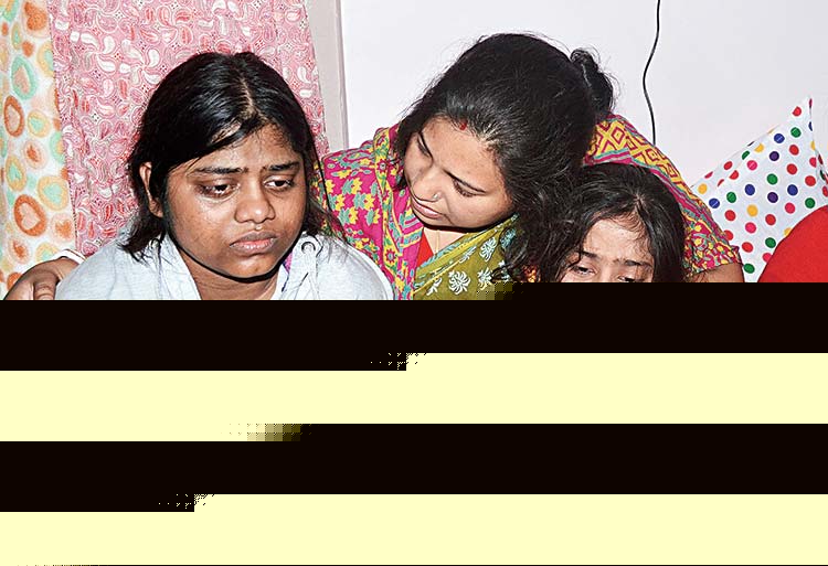 পিতৃহারা: মধ্যমগ্রামে সিভিক ভলান্টিয়ারের মারে প্রাণ হারানো সৌমেন দেবনাথের দুই মেয়ে। —নিজস্ব চিত্র।