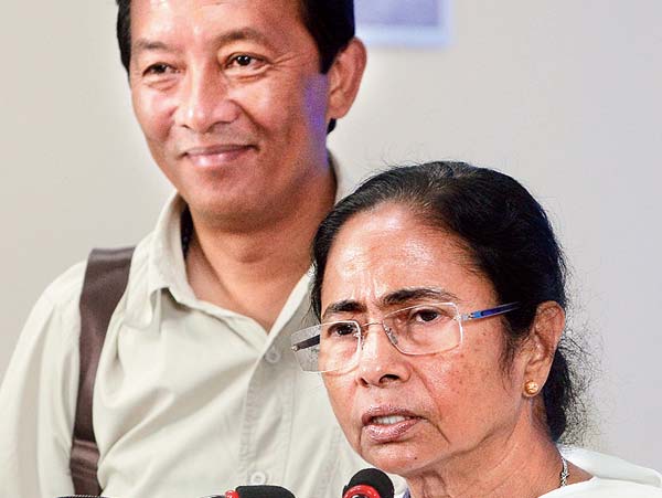 বিনয় তামাঙ্গকে পাশে নিয়ে সাংবাদিক বৈঠকে মমতা। সোমবার নবান্নে। ছবি: প্রদীপ আদক