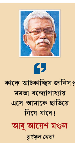 মাত্র ক’দিন আগে মালদহের ইংরেজবাজারে বিদ্যুৎ দফতরের এক অফিসারকে কলার ধরে চড় মারতে গিয়ে দল থেকে বহিষ্কৃত হয়েছেন জেলা যুব তৃণমূল সভাপতি বিশ্বজিৎ রায় ওরফে বুলেট। আবু আয়েশের এ দিনের কীর্তি সেই গুন্ডামিকেও ছাপিয়ে গেল বলে মনে করছেন অনেকেই। আবু আয়েশের দাবি, ‘সব বানানো ঘটনা’। যদিও টোল প্লাজার কর্মীরা বলেছেন, গোটা ঘটনাটি সিসিটিভি ক্যামেরায় বন্দি হয়েছে। পুলিশ চাইলেই ফুটেজ দেওয়া হবে। প্রসঙ্গত, ওই টোল প্লাজার কর্মী সংগঠন তৃণমূল প্রভাবিত। কর্মীদের পক্ষ থেকে ডানকুনি থানায় আবু আয়েশের বিরুদ্ধে নিগ্রহের লিখিত অভিযোগ দায়ের হয়েছে।