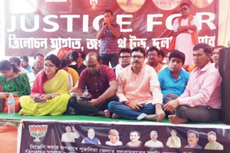 ত্রিলোচন-দুলালের মৃত্যু নিয়ে প্রশাসনের উপরে চাপ ক্রমশ বাড়ানোর নীতি নিচ্ছে বিজেপি। কলকাতা থেকে পুরুলিয়া— বিজেপি বিক্ষোভ দেখিয়েছে নানা জায়গায়। সায়ন্তন-লকেটরা একটানা পড়ে রয়েছেন পুরুলিয়ায়। কেন্দ্রীয় মন্ত্রী বাবুল সুপ্রিয়, বিজেপি নেতা মুকুল রায়রা ঘুরে এসেছেন পুরুলিয়া থেকে। সোমবার যাচ্ছেন রাজ্য বিজেপি-র সভাপতি দিলীপ ঘোষ।