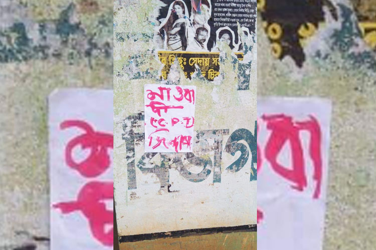 মাওবাদ জিন্দাবাদ লেখা পোস্টারও পড়েছে। নিজস্ব চিত্র।