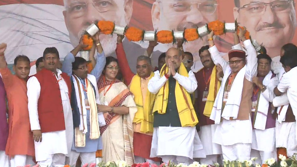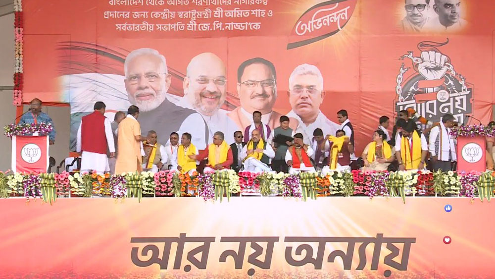সিএএর বিরোধিতায় যে সব রাজ্য সবচেয়ে বেশি উত্তাল হয়েছে, পশ্চিমবঙ্গ সেগুলির অন্যতম। সিএএ, এনআরসি বিরোধিতায় তৃণমূল, কংগ্রেস, বামফ্রন্ট এবং আরও নানা সংগঠনের বিভিন্ন কর্মসূচি এখনও চলছে পশ্চিমবঙ্গে। কিন্তু আইনটা যে হেতু শরণার্থীদের বিষয়ে, সে হেতু সিএএ-র বিষয়ে পশ্চিমবঙ্গের বড় অংশের মানুষের সমর্থন পাওয়া বিজেপির পক্ষে জরুরি। কারণ শরণার্থীর ঢল পশ্চিমবঙ্গকে যে ভাবে সইতে হয়েছে, এ দেশের আর ক’টা রাজ্যের ক্ষেত্রে তা রয়েছে, সে নিয়ে যথেষ্ট সংশয় রয়েছে। সুতরাং সিএএ পাশ হওয়ার পরে পশ্চিমবঙ্গে অমিত শাহের প্রথম সভা রাজনৈতিক ভাবে অত্যন্ত তাৎপর্যপূর্ণ ছিল। এই সভা থেকে অমিত শাহ আবার বললেন, ‘‘সংখ্যালঘুদের ভুল বোঝানো হচ্ছে। সিএএ-তে কারও নাগরিকত্ব যাবে না, এটা নাগরিকত্ব দেওয়ার আইন।’