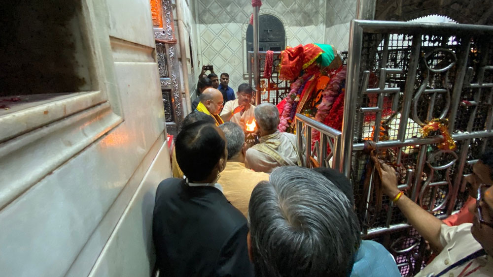 কালীঘাটে পুজো দিলেন অমিত শাহ। নিজস্ব চিত্র