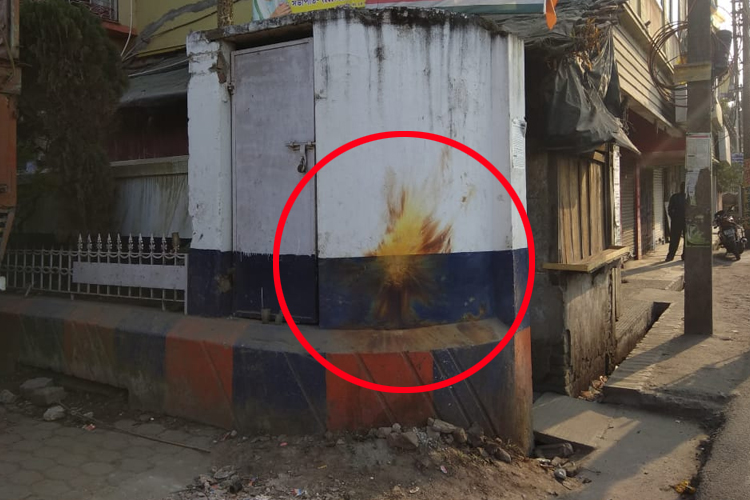 পাম্প চত্বরে এখনও রয়ে গিয়েছে বোমাবাজির ছাপ।—নিজস্ব চিত্র।