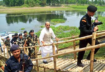যে পথ দিয়ে এত দিন গরু যাতায়াত করত, সেই ইছামতীর পাড় এ দিন ঘুরে দেখেন রাজনাথ। সঙ্গে ছিলেন বিএসএফ কর্তারা। পরে এলাকার মানুষ তাঁকে লিখিত স্মারকলিপি দেন। আংড়াইল ও ইছামতী নদীর ও পাড়ে বাংলাদেশের যশোরের পুঁটখালি এলাকায় সমস্ত গরুর খাটালগুলি ভেঙেচুরে পড়ে থাকতে দেখেন মন্ত্রী।