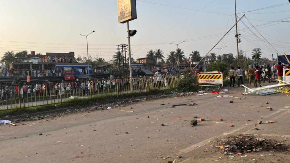 ঘটনাস্থলে এলেন দক্ষিণবঙ্গের এডিজি সিদ্ধিনাথ গুপ্ত। পুলিশকে লক্ষ্য করে বোতল, ইটবৃষ্টি।এসপি অফিসকে লক্ষ্য করে ইট ছোড়ার অভিযোগ।